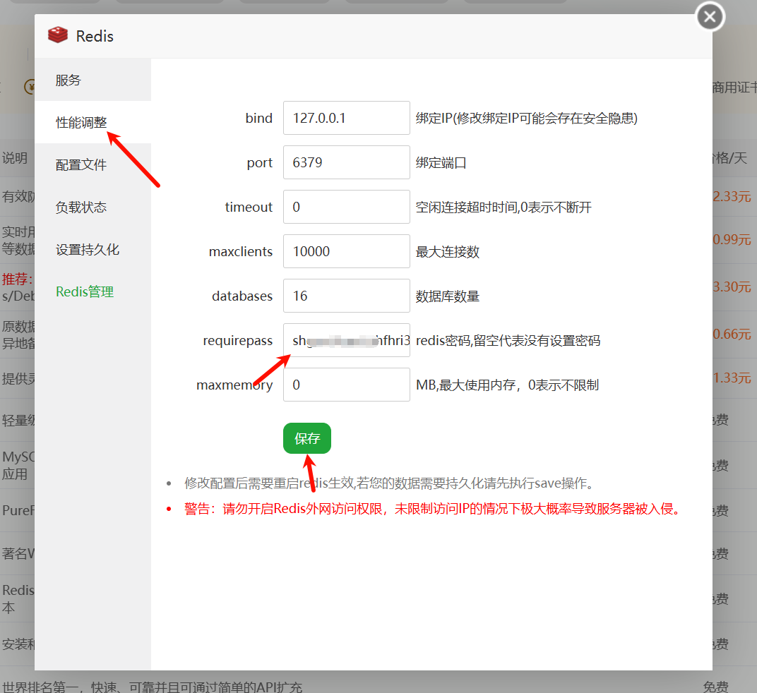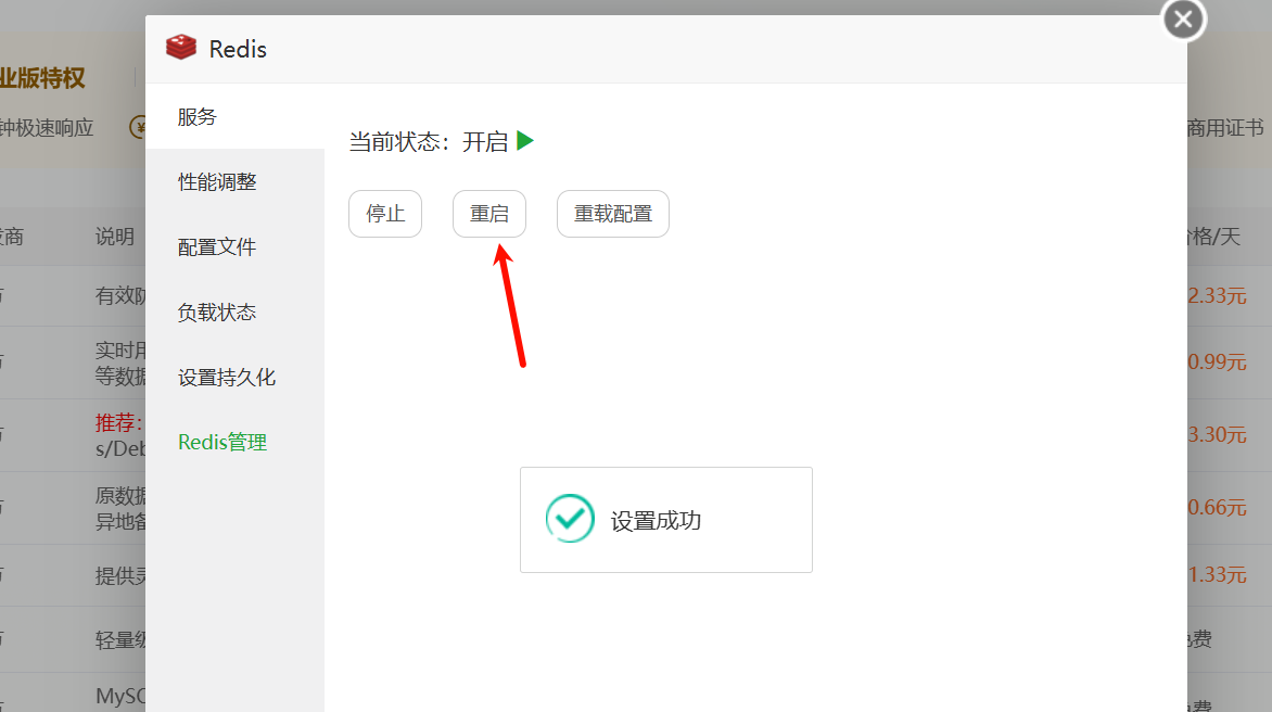 安装完成之后,点击旁边的设置,设置一下 Redis 的密码: