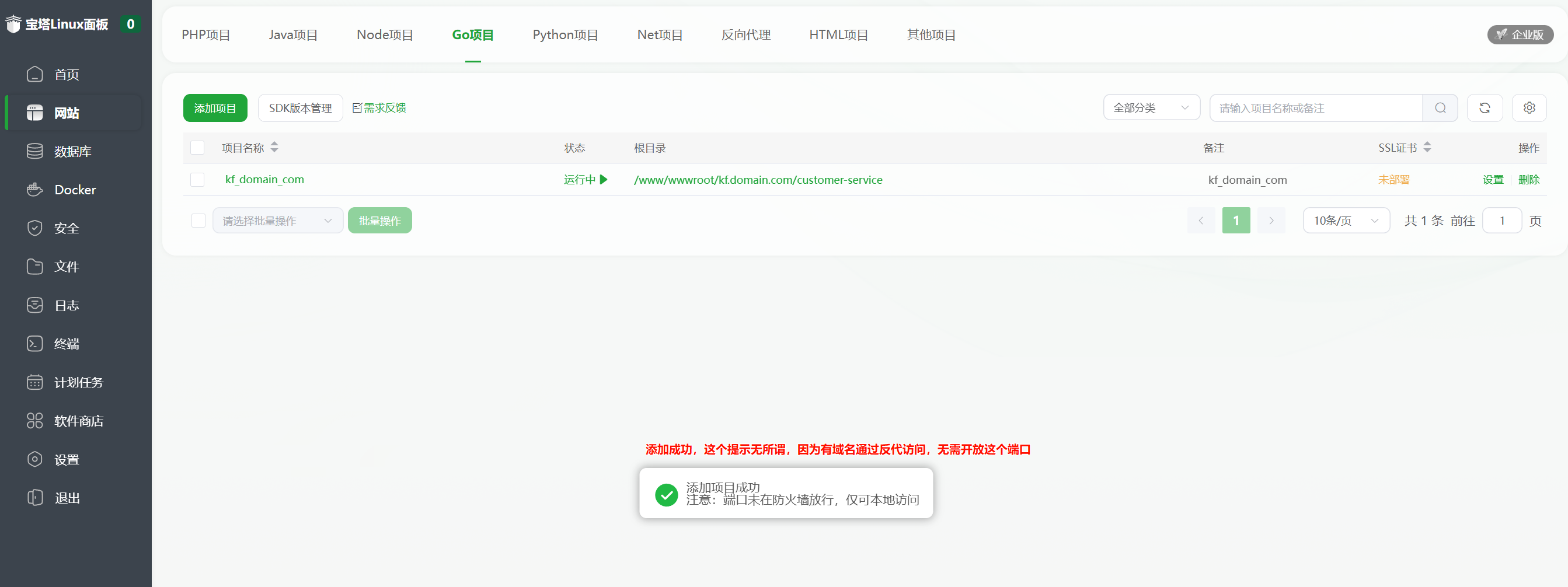 至此,整个部署最难的部分已经完成了。接着就可以创建 Go 项目并启动它了。