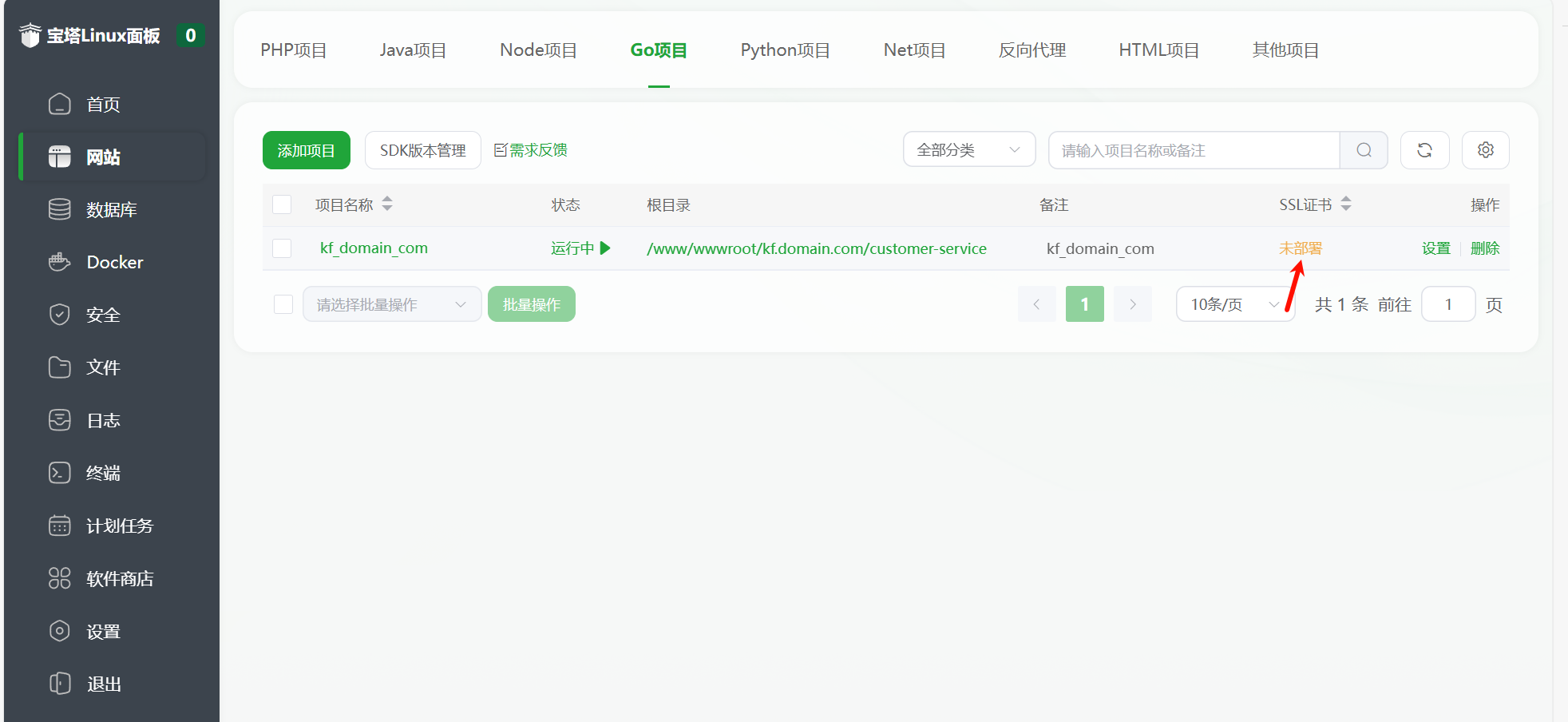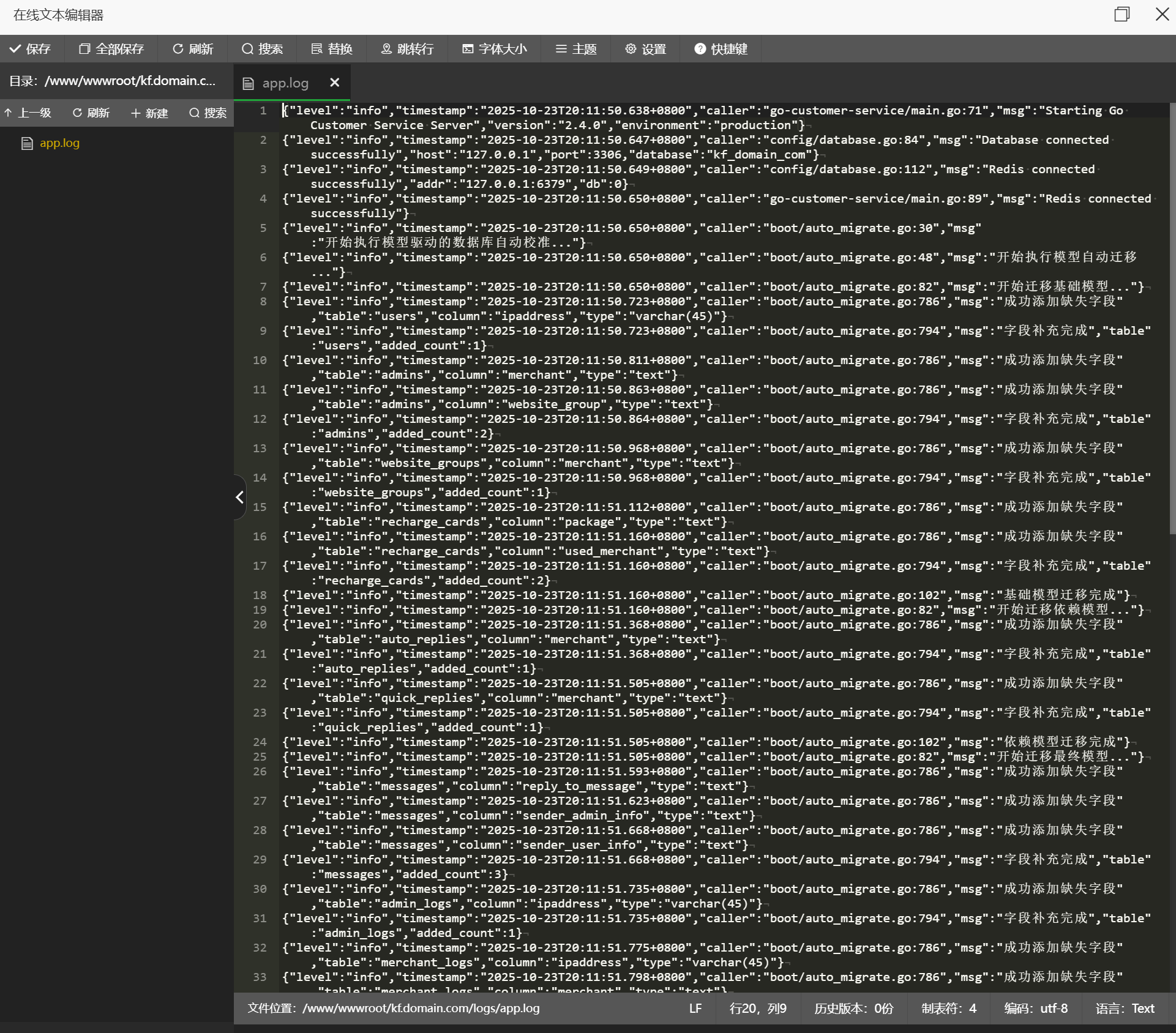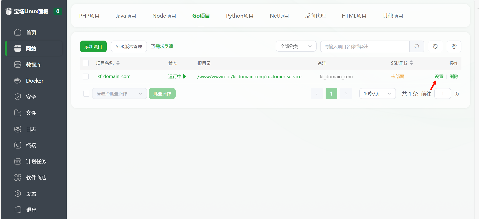 「掌上无忧」客服系统是采用 Go 语言编写的,目前采用的版本是:go1.24.2。Go 语言的系统最大的好处是不用考虑编程语言环境,因为程序本身自带了 Go 编译器,只要运行一个文件就能全搞定,本篇教程用宝塔来部署运行本客服系统。