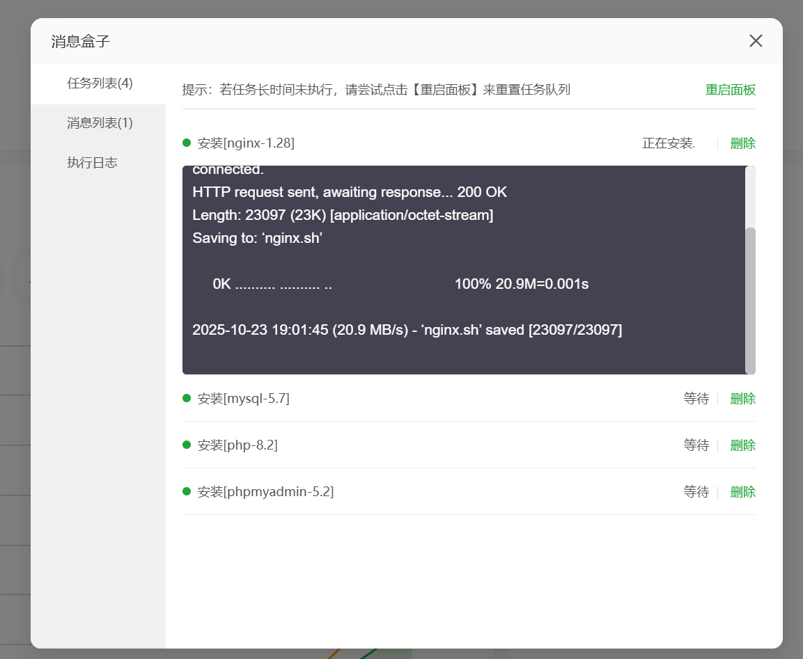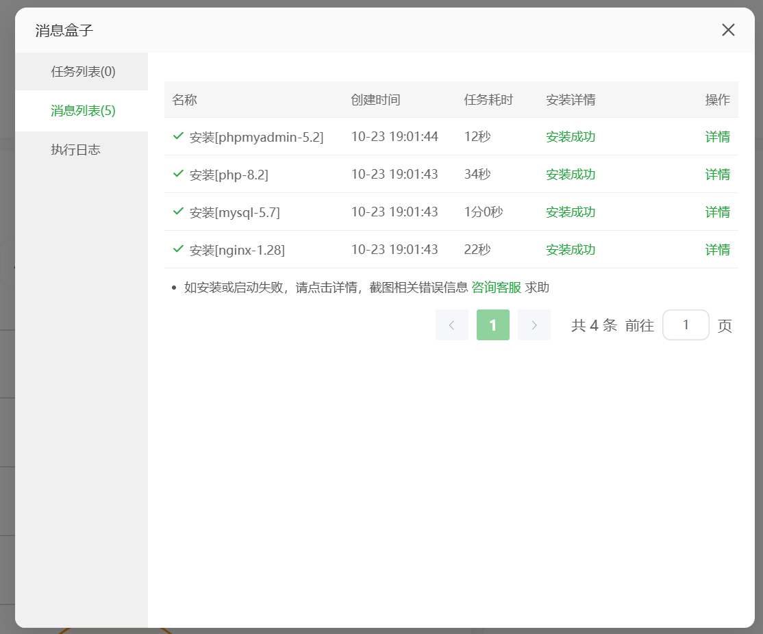 以上是安装基础环境,点击一键安装之后,就开始跑配置了。