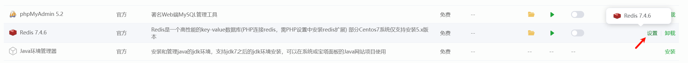 - 安装完推荐的环境,再去应用商店安装 Redis 7 的最新版本。