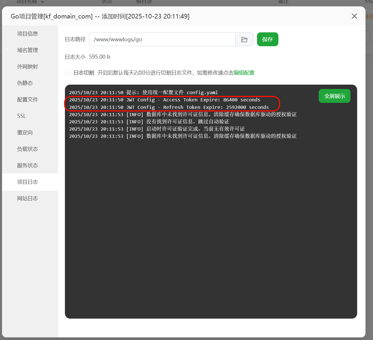 这里的日志就很详细了,以后也可以通过这个来排查错误。
