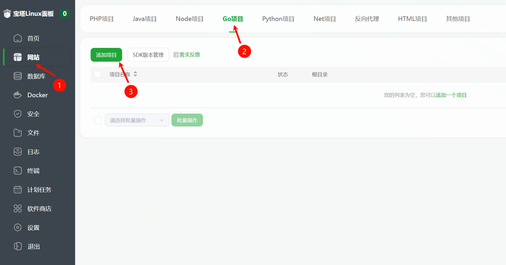 本项目是采用 Go 语言编写的,故我们创建 Go 项目来管理运行它。