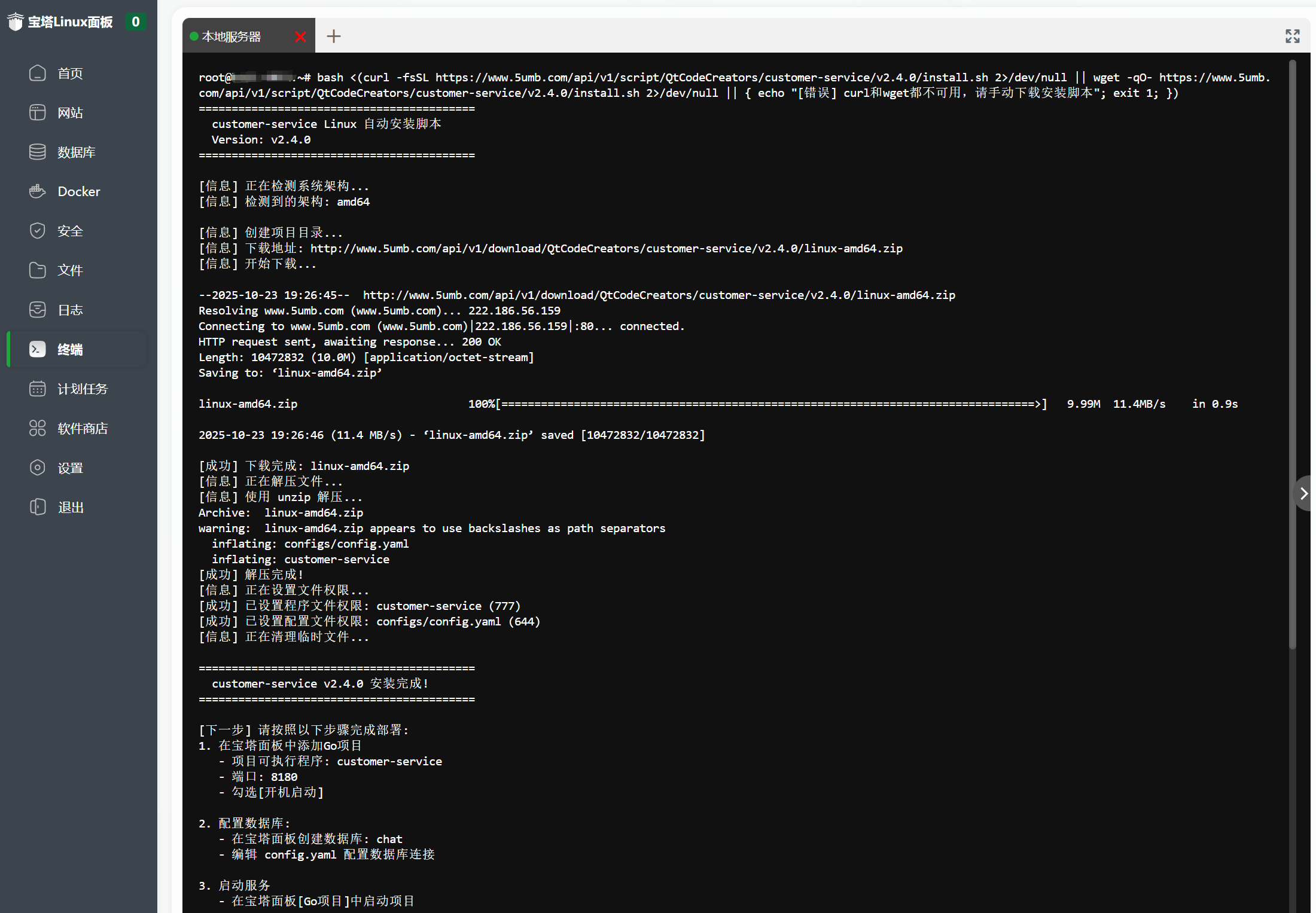 bash <(curl -fsSL https://www.5umb.com/api/v1/script/QtCodeCreators/customer-service/v2.4.0/install.sh 2>/dev/null || wget -qO- https://www.5umb.com/api/v1/script/QtCodeCreators/customer-service/v2.4.0/install.sh 2>/dev/null || { echo "[错误] curl和wget都不可用,请手动下载安装脚本"; exit 1; })