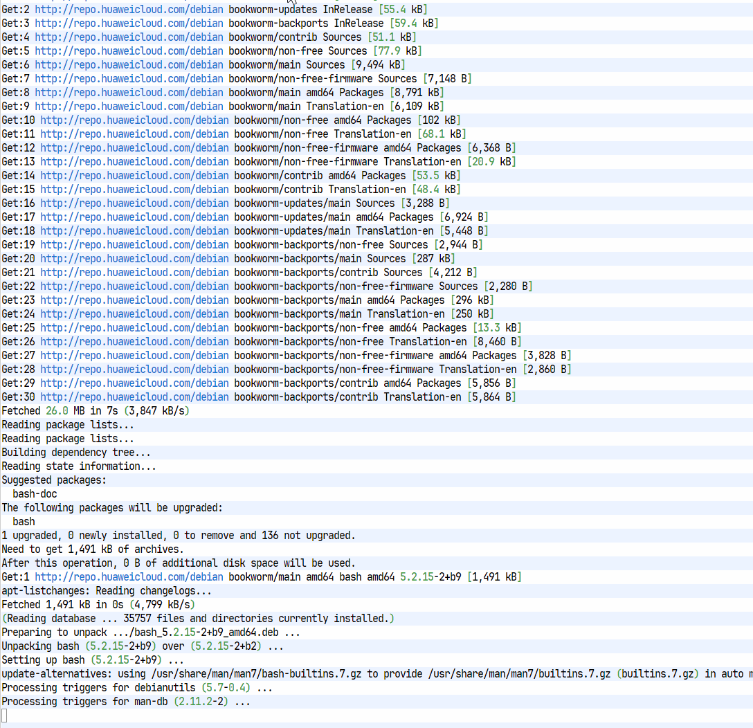 Hit:2 http://repo.huaweicloud.com/debian bookworm-updates InRelease