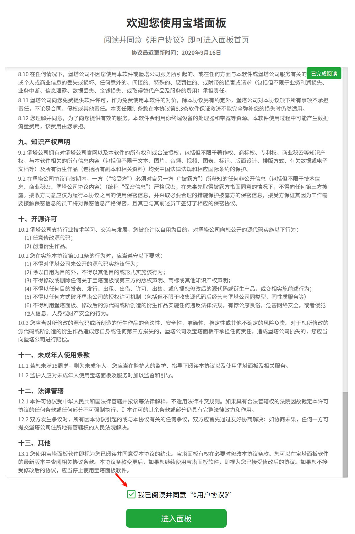 看到类似以下的信息说明宝塔面板已经安装完成。
